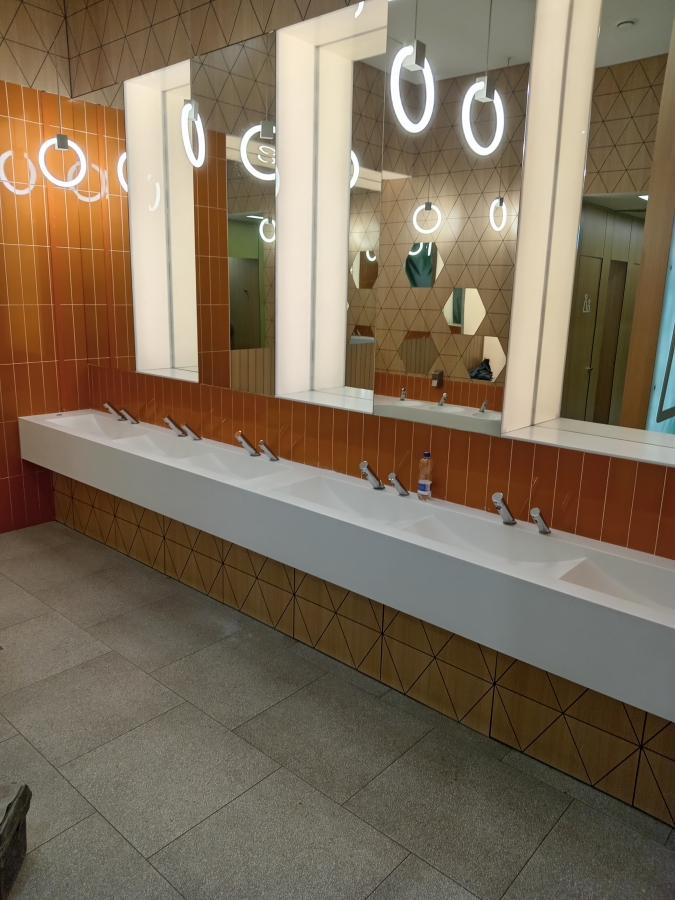 Умывальник с влитыми раковинами для торговых центров.